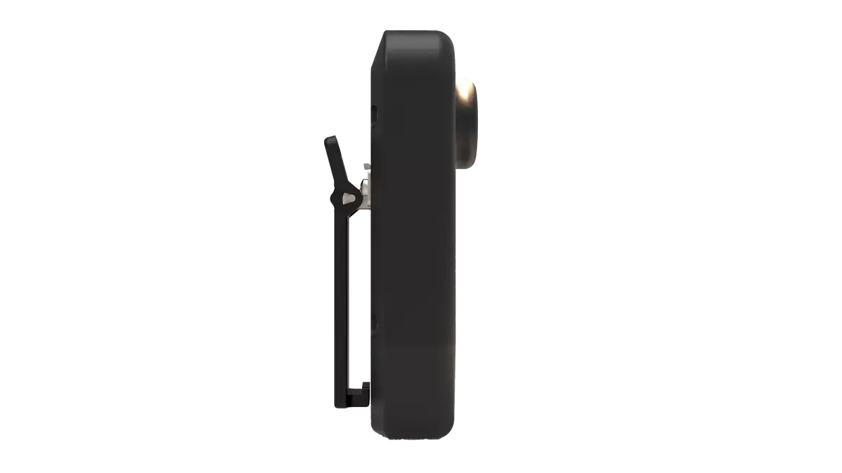 Оснащён дисплеем для отображения информации, кнопками управления и фиксатором для крепления на рабочую одежду.