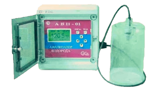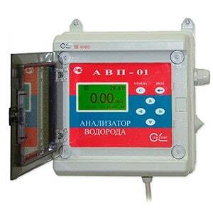 Серийно производимый стационарный анализатор водорода АВП-01Л применяется для мониторинга содержания водорода (Н2) в жидкостях или газах, определения показателей парциального давления водорода и температуры анализируемой среды.