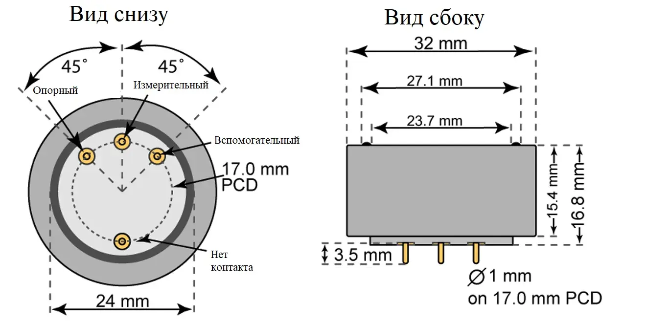 Принцип работы датчика Cl2/C-20 основан на электрохимической реакции, в которой хлор взаимодействует с электродом, создавая электрический ток, пропорциональный его концентрации.