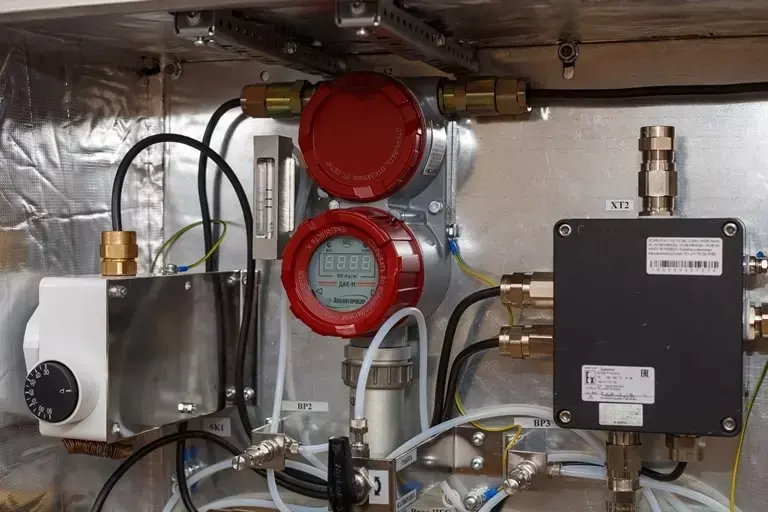 Результаты измерений отображаются на экране газоанализатора. Для передачи данных прибор оснащён цифровым интерфейсом RS485 и аналоговым выходным сигналом (4–20) мА. В устройстве реализована функция самопроверки работоспособности для выдачи информации о возникших неполадках при эксплуатации датчика. Встроенное ПО соответствует ГОСТ Р 8.654-2015 и защищено от несанкционированного доступа.