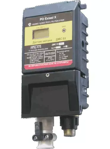 Датчики ДМС 03 выпускаются в 3 модификациях. В зависимости от модификации имеют встроенную или выносную измерительную головку. Максимальное расстояние изм. головки от основного устройства - 30 м. Измерительная головка защищена от проникновения струй воды. Может использоваться для измерения метана в трубопроводах дегазационных систем.