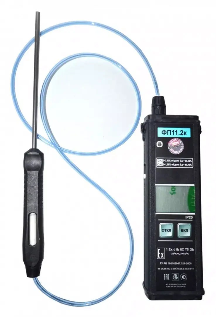 - металлический корпус высокой прочности, большой цифровой ЖК-дисплей;- маркировка взрывозащиты со степенью 1Ex[ib]dsIICT5 позволяет использовать носимый газоанализатор-сигнализатор ФП-11.2К во взрывоопасных зонах помещений разнообразных объектов и наружных установок;