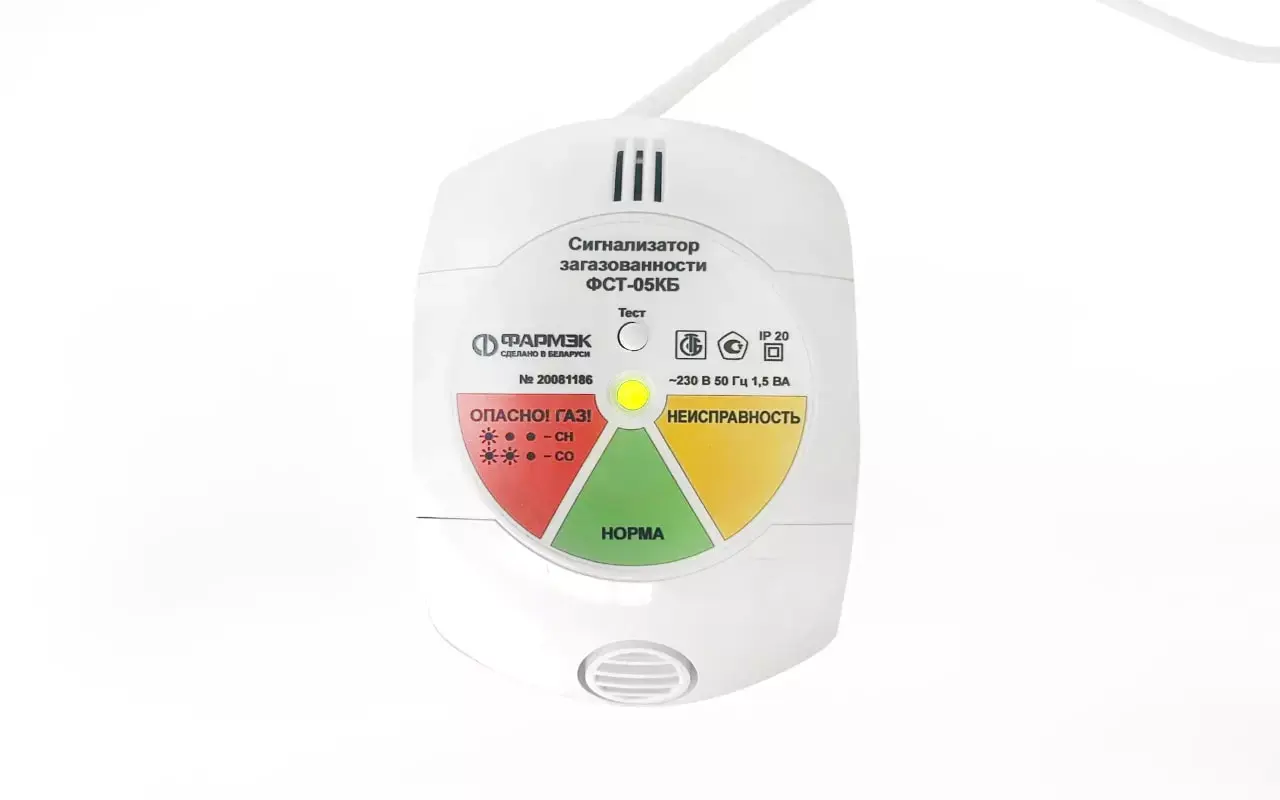 Серийно производимый стационарный сигнализатор загазованности ФСТ-05КБ применяется для непрерывного контроля концентраций следующих компонентов: метана (СН4), пропана (С3Н8), оксида углерода (СO), включения светозвукового оповещения при превышении порогов, перекрытия отсечного клапана подачи газа или управления иным внешним устройством.