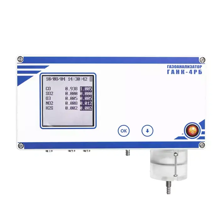 Серийно производимый универсальный восьмиканальный стационарный газоанализатор ГАНК-4РБ разработан для машинального непрерывного контроля за содержанием вредных веществ в воздухе рабочей зоны промышленных предприятий, в атмосферном воздухе, в вентиляционных и технологических выбросах.