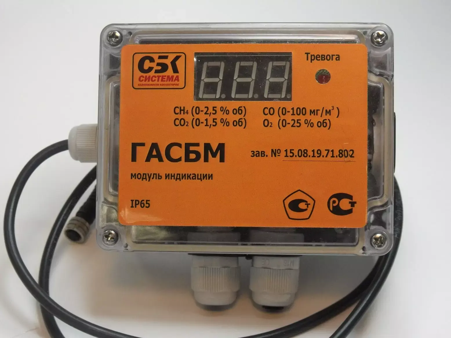 Серийно производимый стационарный одноканальный газоанализатор системы безопасности ГАСБМ применяется для непрерывного контроля 1 из следующих компонентов: метана (СН4), кислорода (О2), углекислого (СО2) или угарного (СО) газа.