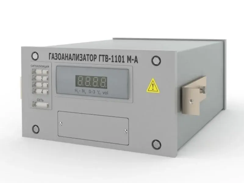 Стационарный серийный газоанализатор водорода ГТВ-1101М-А применяется для контроля объёмной доли водорода в азоте (воздухе) или азота в гелии на объектах атомной энергетики.