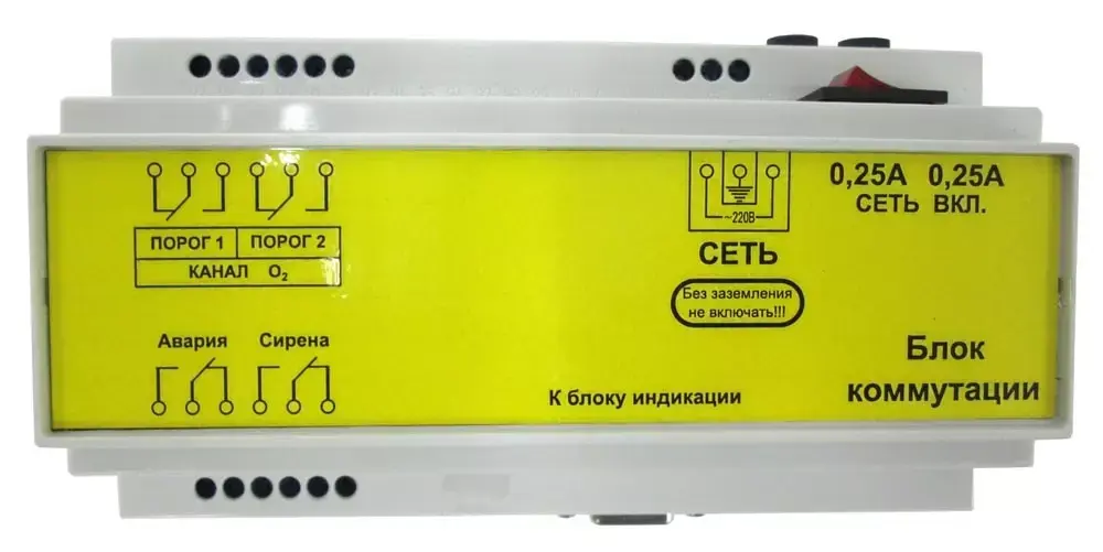 В состав стационарного газоанализатора входят выносные блоки датчиков (БД), блок индикации (БИ) и блок коммутации (БР). Блок коммутации управляет работой подключённых к нему внешних устройств (вентиляция). Количество сенсоров (датчиков) зависит от числа контролируемых зон. Максимальное количество выносных датчиков - 16.