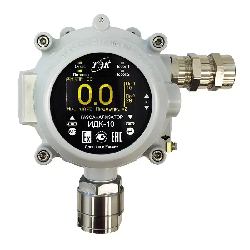 Серийно производимый стационарный одноканальный газоанализатор ИДК-10-Х2 с термокаталитическим датчиком предназначен для непрерывного контроля концентрации горючих газов и паров легковоспламеняющихся жидкостей в воздухе рабочей зоны.