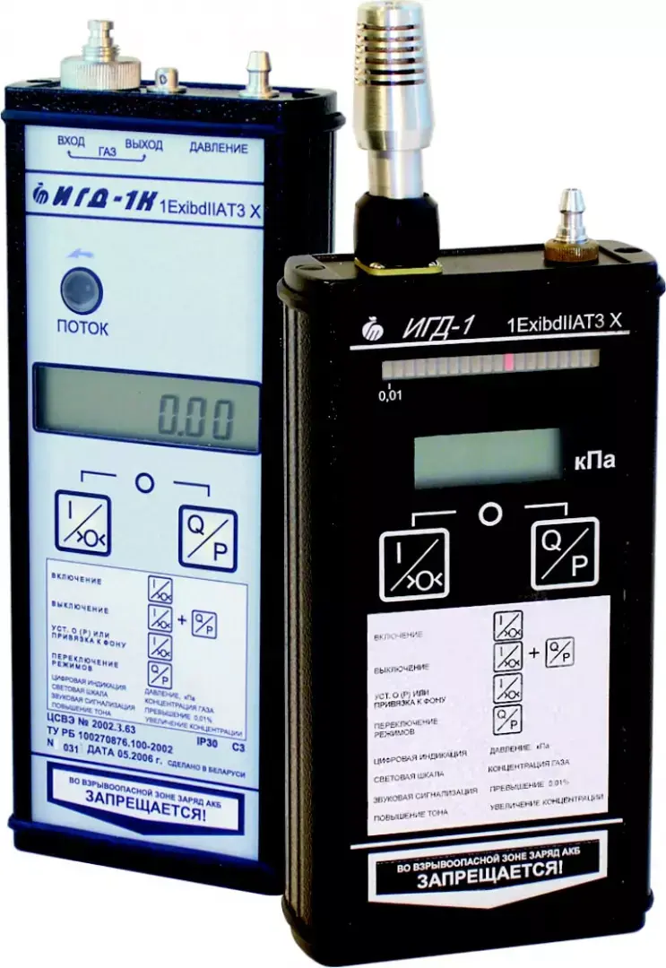 Переносные взрывозащищенные индикаторы газа и давления ИГД-1, ИГД-1 К применяются для обнаружения мест утечек метана (CH4) и измерения избыточного давления в бытовых газовых приборах.