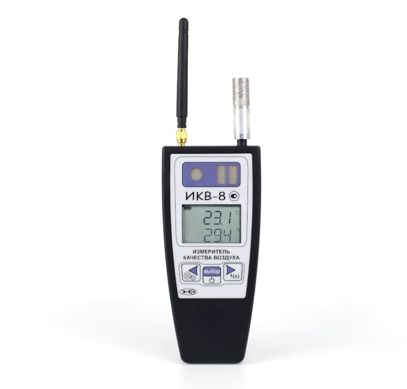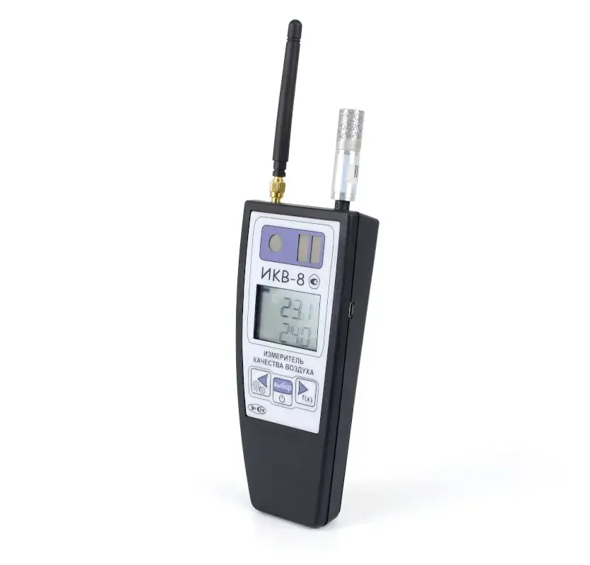 Серийно производимый переносной многоканальный измеритель качества воздуха ИКВ-8-П применяется для контроля любых 2 нижеперечисленных газов: кислорода (О2), диоксида углерода (CO2), оксида углерода (CO), аммиака (NH3), сероводорода (H2S), диоксида азота (NO2), а также для замеров относительной влажности, температуры, атмосферного давления.