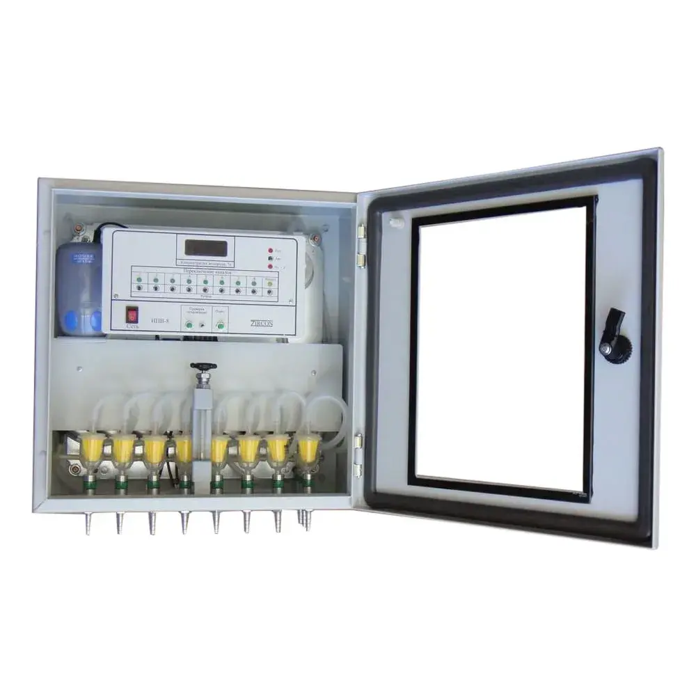 В состав газоанализатора входит первичный и вторичный преобразователь, а также побудитель расхода воздуха, размещённые в едином корпусе (в металлическом шкафу) со степенью защиты от внешних воздействий IP60.