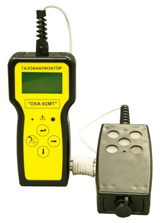 - ОКА-92МТ (O2, CH4, CO) переносной газоанализатор кислорода, горючих и токсичных газов с калибровкой по метану и угарному газу с выносным блоком датчиков на кабеле 6 метров, исполнение общепромышленное;
