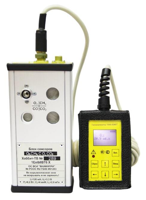 - ОКА-92МТ (O2, C6H14, H2S) переносной газоанализатор кислорода, горючих и токсичных газов с калибровкой по гексану, сероводороду с выносным блоком датчиков на кабеле 14 метров, исполнение взрывозащищённое.