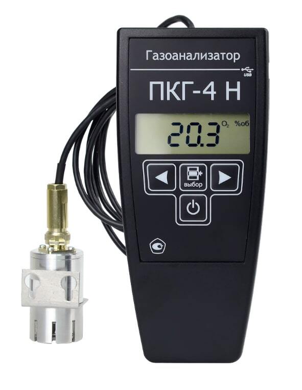 Прибор изготавливается согласно техническим условиям ТУ 4215-004-70203816-2015 и конструктивно выполнен в пластмассовом корпусе, внутри которого располагаются: печатная плата, аккумуляторная батарея, встроенный газочувствительный электрохимический сенсор кислорода (модификация ПКГ-4 В-К-П и ПКГ-4 В-К-П-Д) или внешний сенсор кислорода (ПКГ-4 Н-К-П), побудитель расхода (модификация ПКГ-4 В-К-П).