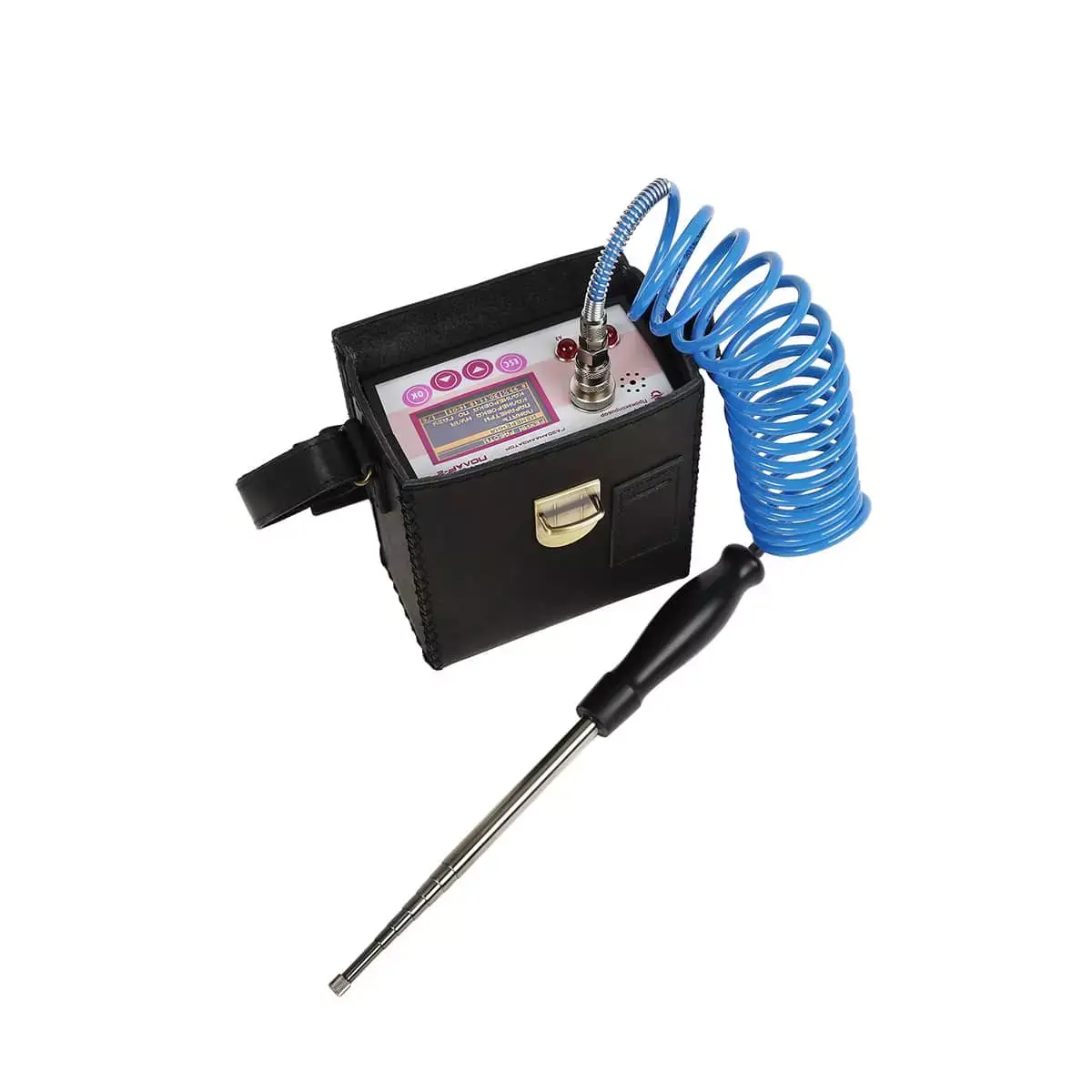 В комплектацию входит кожаный футляр для транспортировки и хранения. Дополнительно можно заказать пробоотборный зонд, принтер со специальным кабелем для подключения в случае необходимости распечатывания результатов измерений.