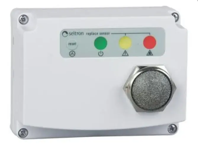 Прибор выполнен в огнеупорном пластиковом корпусе исполнения IP42. Имеет 3 световых индикатора и кнопку сброса.