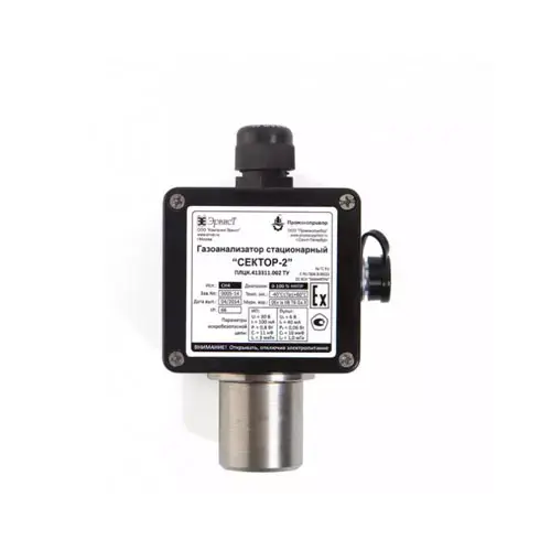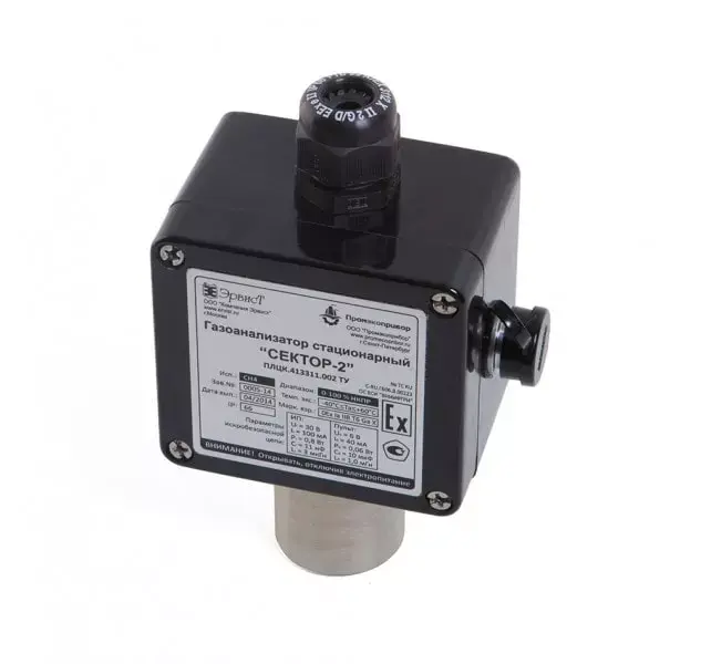 Серийно производимый стационарный одноканальный газоанализатор Сектор-2 применяется для контроля концентраций взрывоопасных газов: метана (CH4), пропана (C3H8), бутана (C4H10), пентана (C5H12) или гексана (C6H14).