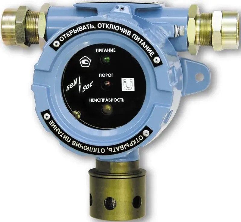 Стационарный газоанализатор СЕНС-СГ-ДГ также оснащён 2 сигнальными реле, которые срабатывают при превышении установленных порогов концентрации или возникновении неисправностей. Два кабельных ввода дают возможность подключать до 127 газоанализаторов в одну линию, что упрощает организацию системы аварийной защиты объекта.