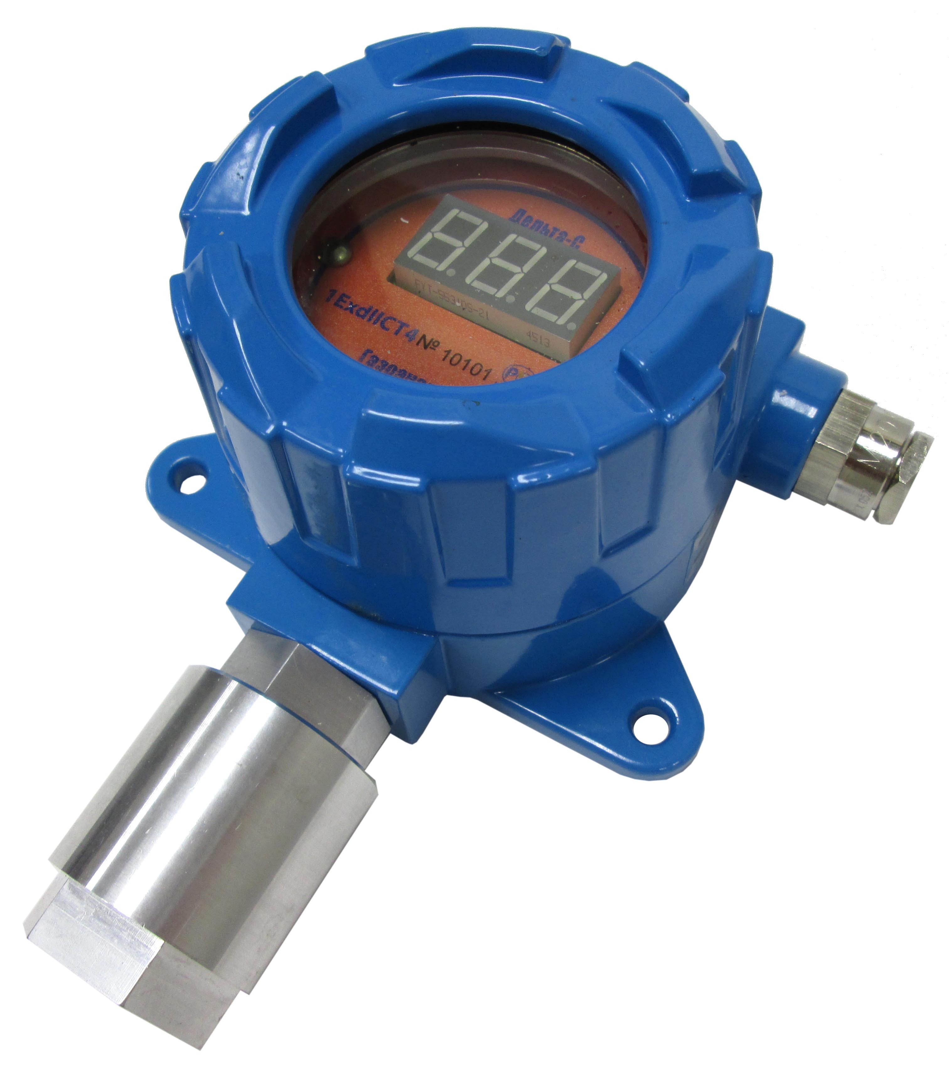 Цифровая трехразрядная матрица показывает текущую концентрацию по измеряемым компонентам: кислород О2 (в % об.), горючие пары (в % об. или в г/м3) и токсичные (в мг/м3), а также информацию о превышении заданных порогов срабатывания (миганием десятичной точки между цифрами).
