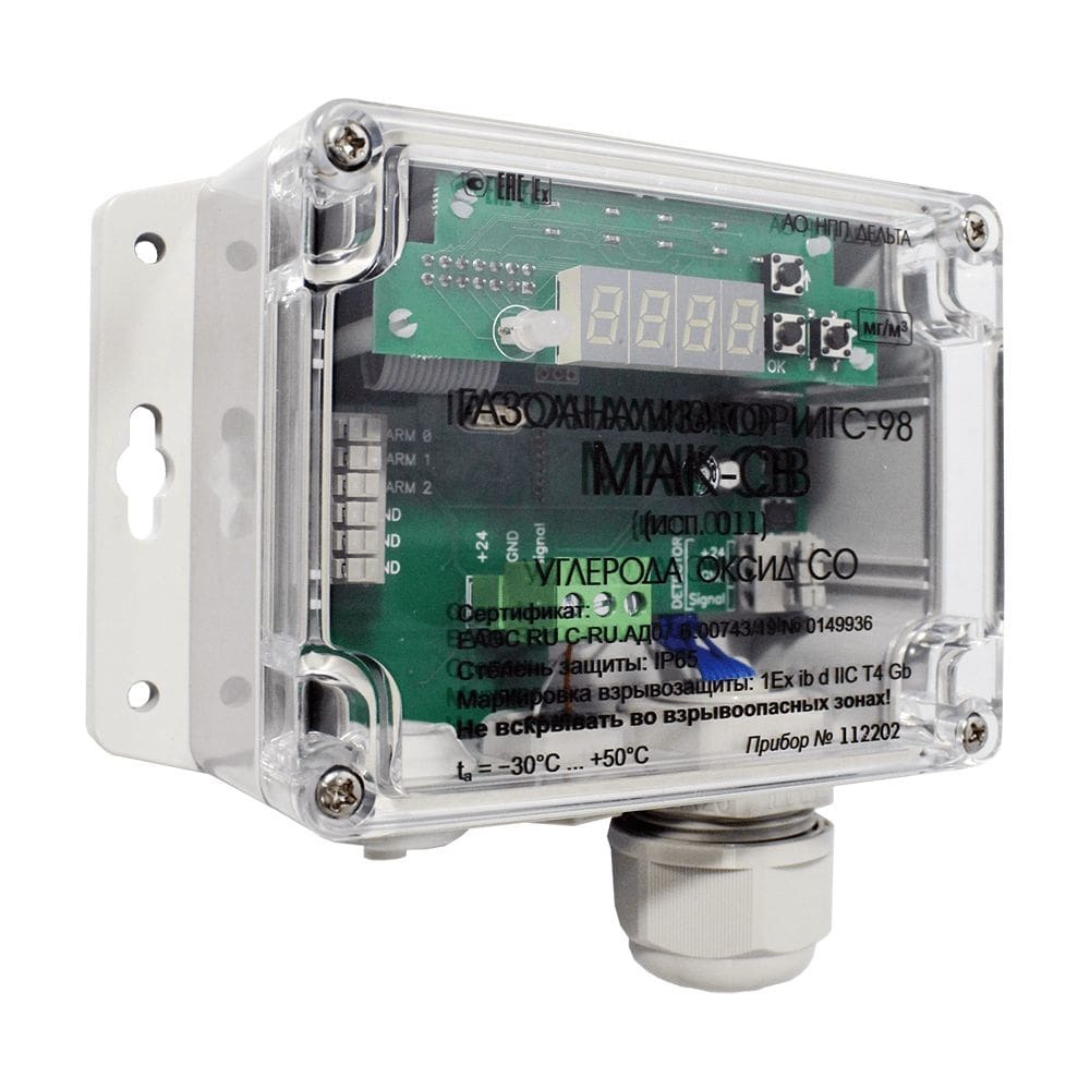 Серийно производимый газоанализатор Сирень-СВ (серия ИГС-98) исп. 011 - это стационарный однокомпонетный газоаналитический прибор, применяемый для постоянного измерения содержания сероводорода (H₂S) в воздухе закрытых помещений. В универсальную конструкцию газоанализатора установлен высокочувствительный электрохимический сенсор. Прибором используется диффузионный метод отбора пробы. Газоанализатор Сирень-СВ не требует подключения к сторонним устройствам для обработки получаемых сенсорами сигналов.