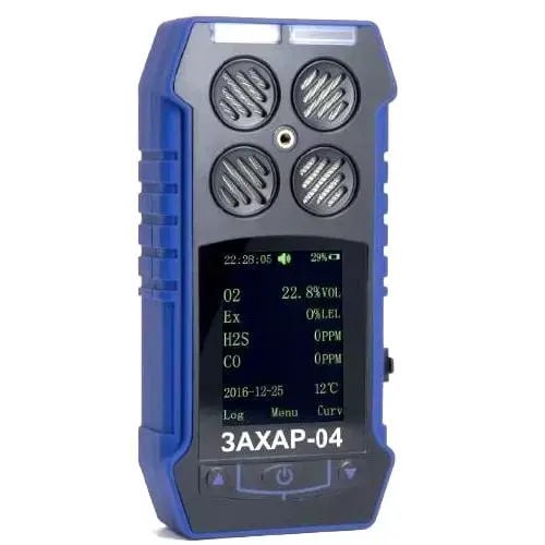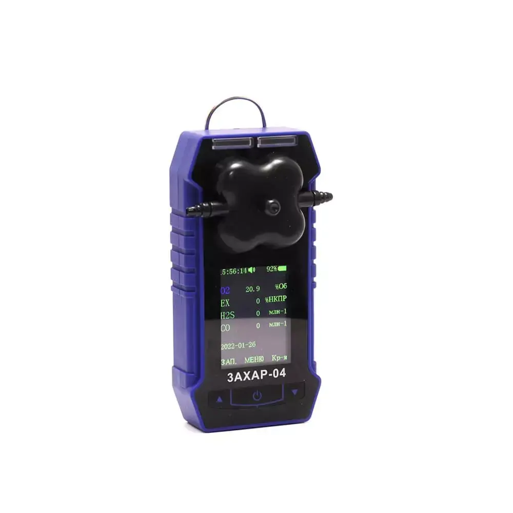 Серийно производимый портативный многокомпонентный газоанализатор Захар-04 применяется для контроля концентрации токсичных газов и кислорода в воздухе рабочей зоны. Переносные газоанализаторы Захар-04 непрерывно контролируют 4 газа: природный газ (метан) (CH4), кислород (O2), сероводород (H2S) и угарный газ (CO).